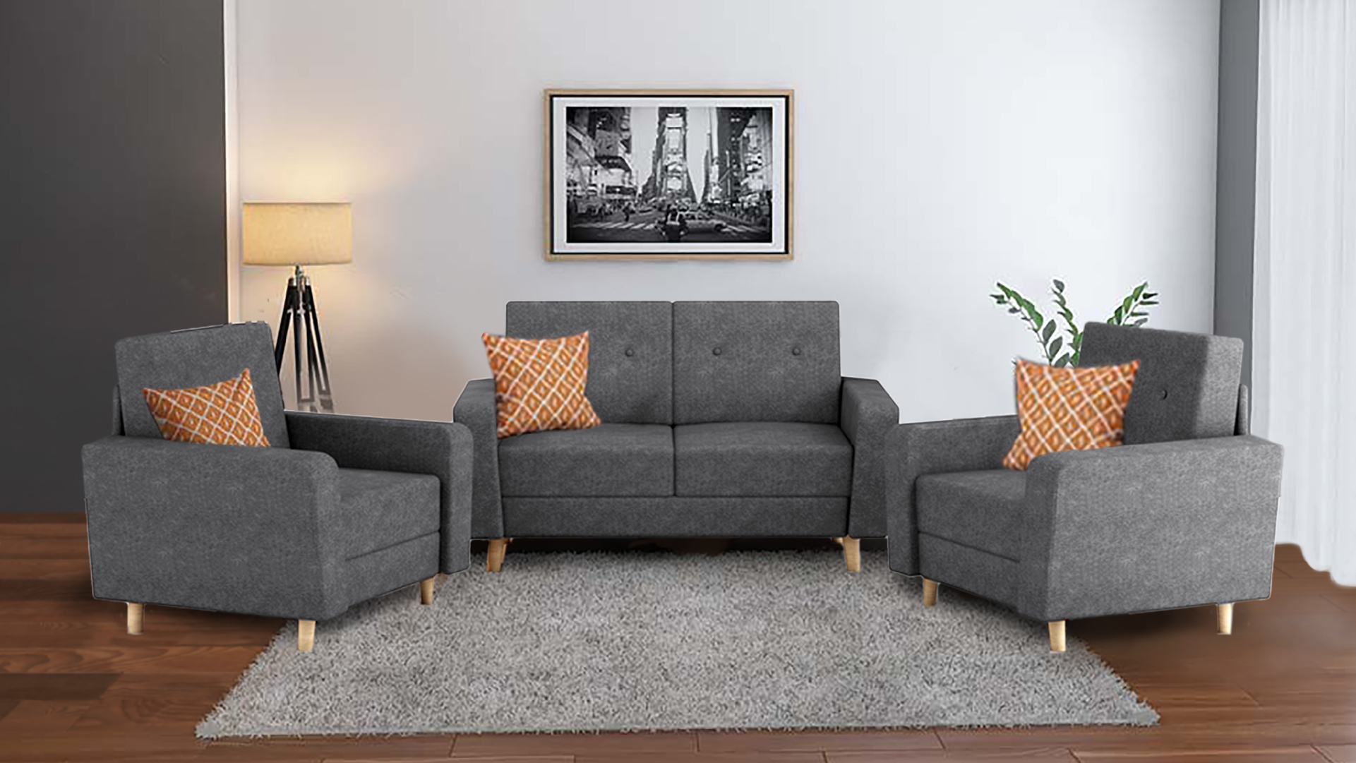 Ash Grey Molfino Sofa 2+1+1 Seater